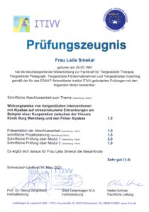 - Reha- und Therapieangebote mit tiergestützter sozialer Arbeit als ergänzende Maßnahme